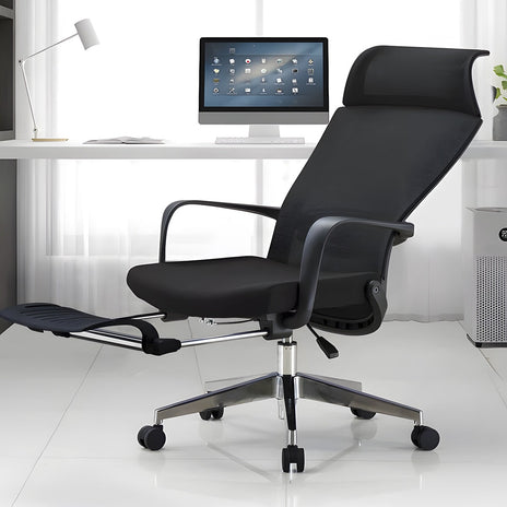 アームチェア 高密度ウレタンフォーム メッシュ張地 キャスター付き フットレスト ヘッドレスト 高通気 ブラック カスタマイズ可能 BGY-M-113