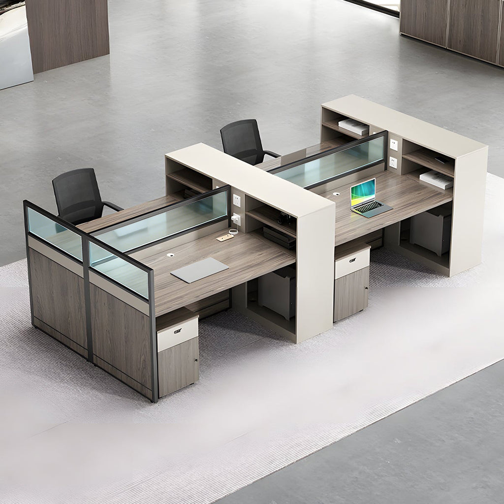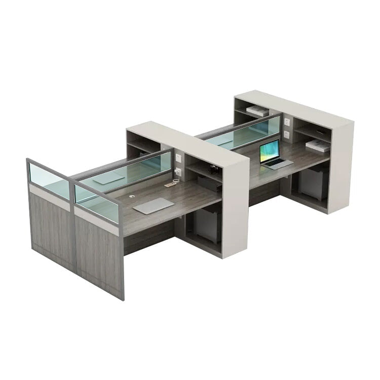 オフィスデスク パソコンデスク 事務デスク 配線穴付き ダイヤル錠付き パネル脚 扉付き収納 シンプル グレー カスタマイズ可能 BGZ-M-137