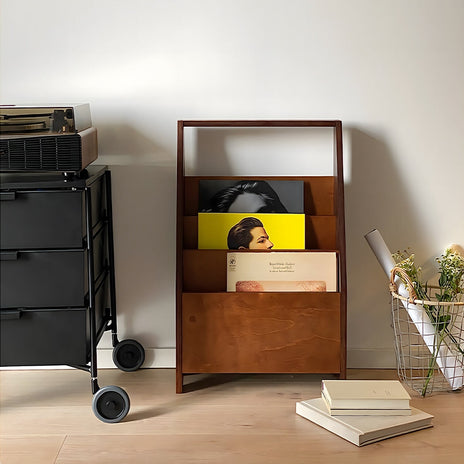 マガジンラック パンフレットスタンド 新聞ラック 木製 雑誌ラック ベニヤ板 木調目 高級感 シンプル ウォルナット ZZJ-M010