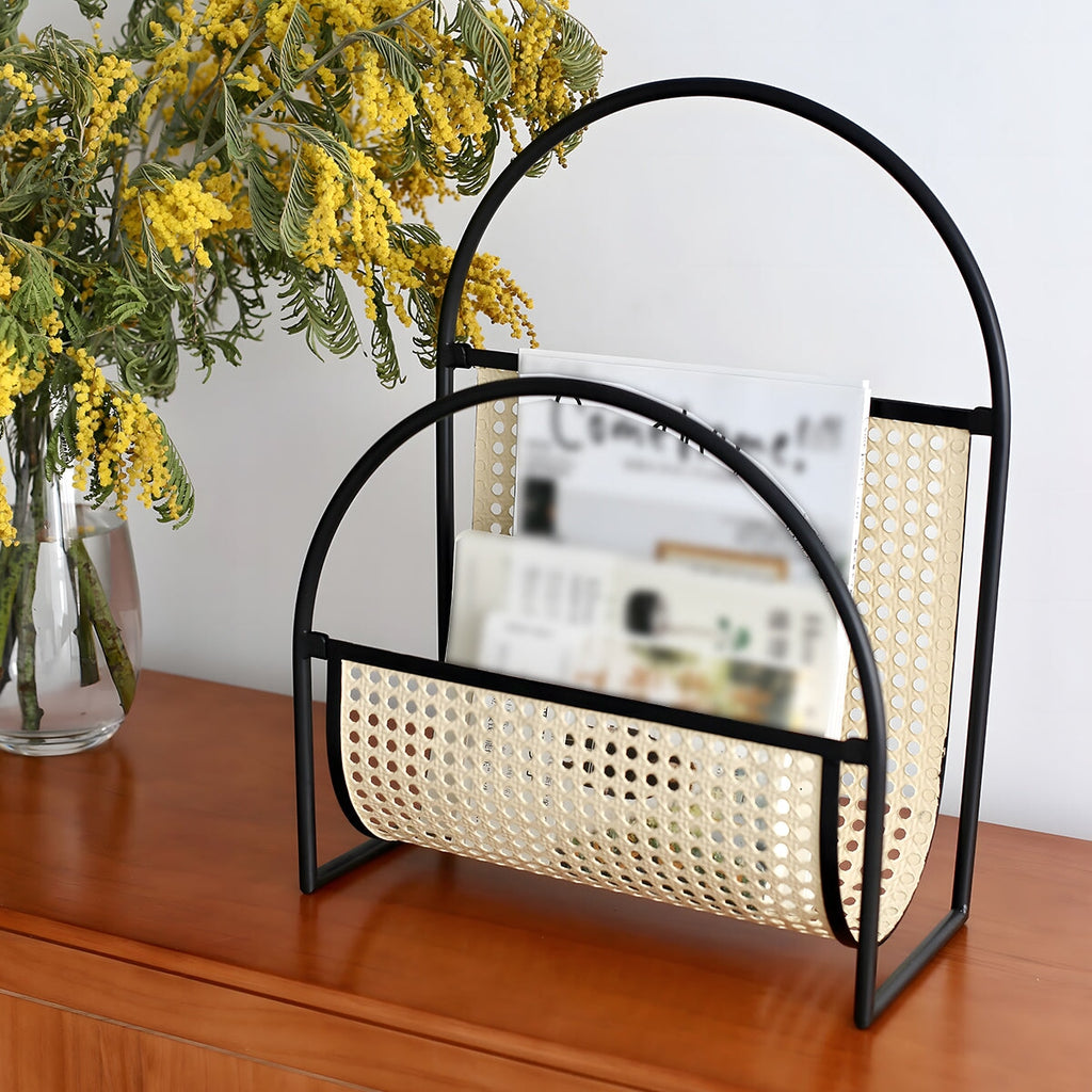 マガジンラック 収納ラック 雑誌ラック PEラタン アイアン アーチ型 収納 ブックスタンド アーチデザイン 高級感 ナチュラル ZZJ-M009