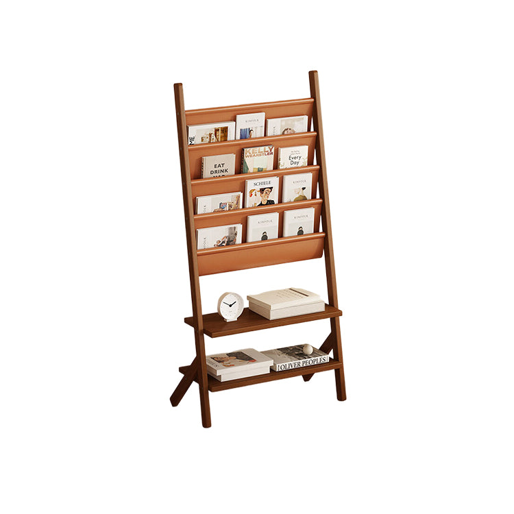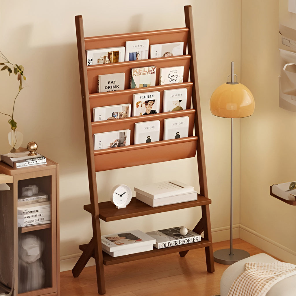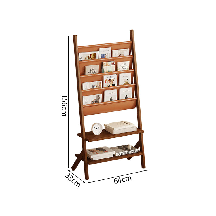 マガジンラック 本棚 収納棚 収納ラック 雑誌ラック 天然木 合成レザー 収納スペース 安定感 耐久性 ナチュラル ZZJ-M013