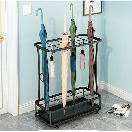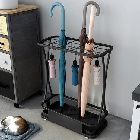 傘立て インテリア性 スチール製 焼付塗装 スリムデザイン コンパクト 省スペース 分類収納 水受け皿 ブラック YSJ-M002
