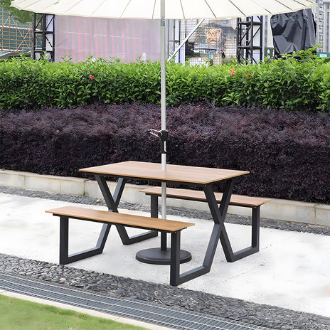 ガーデンテーブル・ベンチセット ガーデンテーブル 屋外家具 ガーデン家具 焼付塗装 スチールフレーム 樹脂木材 高品質 ナチュラル HWZY-M037