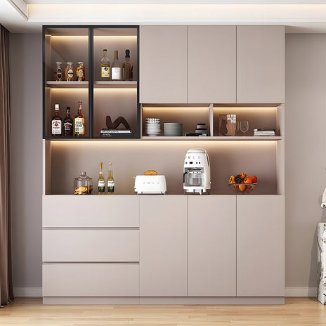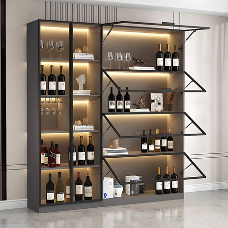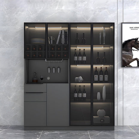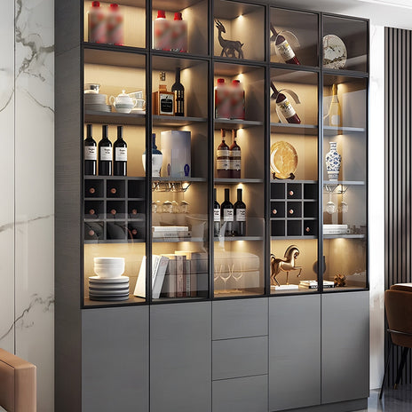キッチン収納 リビング収納 木製棚 収納棚 ワインラック ワイン棚 ワイン収納 LEDライト エコ素材 アルミエッジ キャビネット グレー カスタマイズ可能 JG-M021