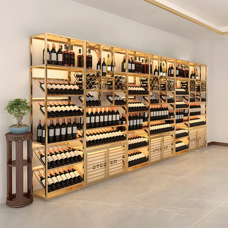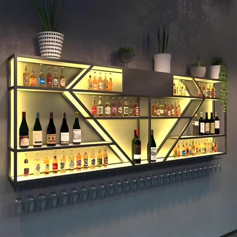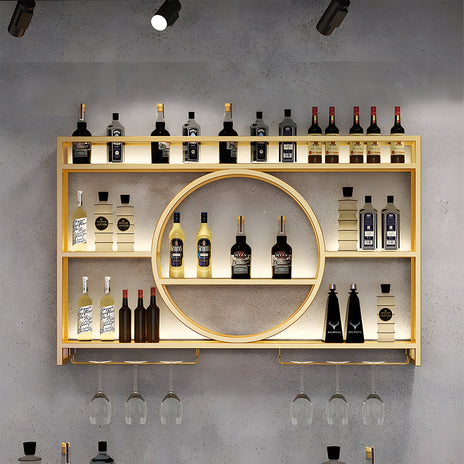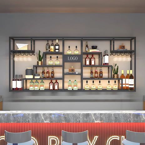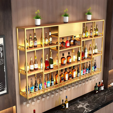 収納ラック お酒収納 カクテルキャビネット 壁面収納 ワイングラスハンガー フック付き スチール製 酒ラック ライト付き 分類収納 ゴールド カスタマイズ可能 JG-M026