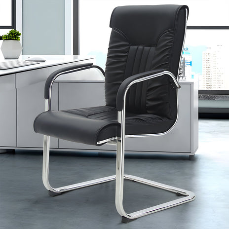 会議用椅子 ミーティングチェア ワークチェア ループ脚 スタッキング収納 シンプル PVCレザー生地 スチールフレーム プラパート 溶接連結 ブラック カスタマイズ可能 BGY-M010