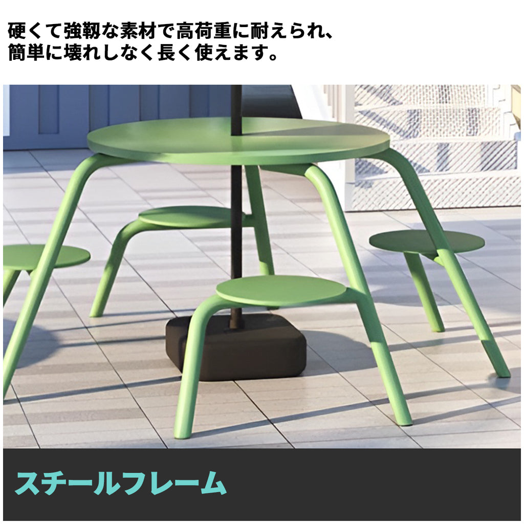 ガーデンテーブル ガーデンファニチャー 屋外ダイニングセット セット 屋外家具 ワニス塗装 スチールフレーム ガーデンパラソル 防水性 グリーン ブルー カスタマイズ可能 HWZY-M042
