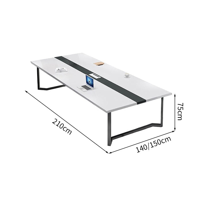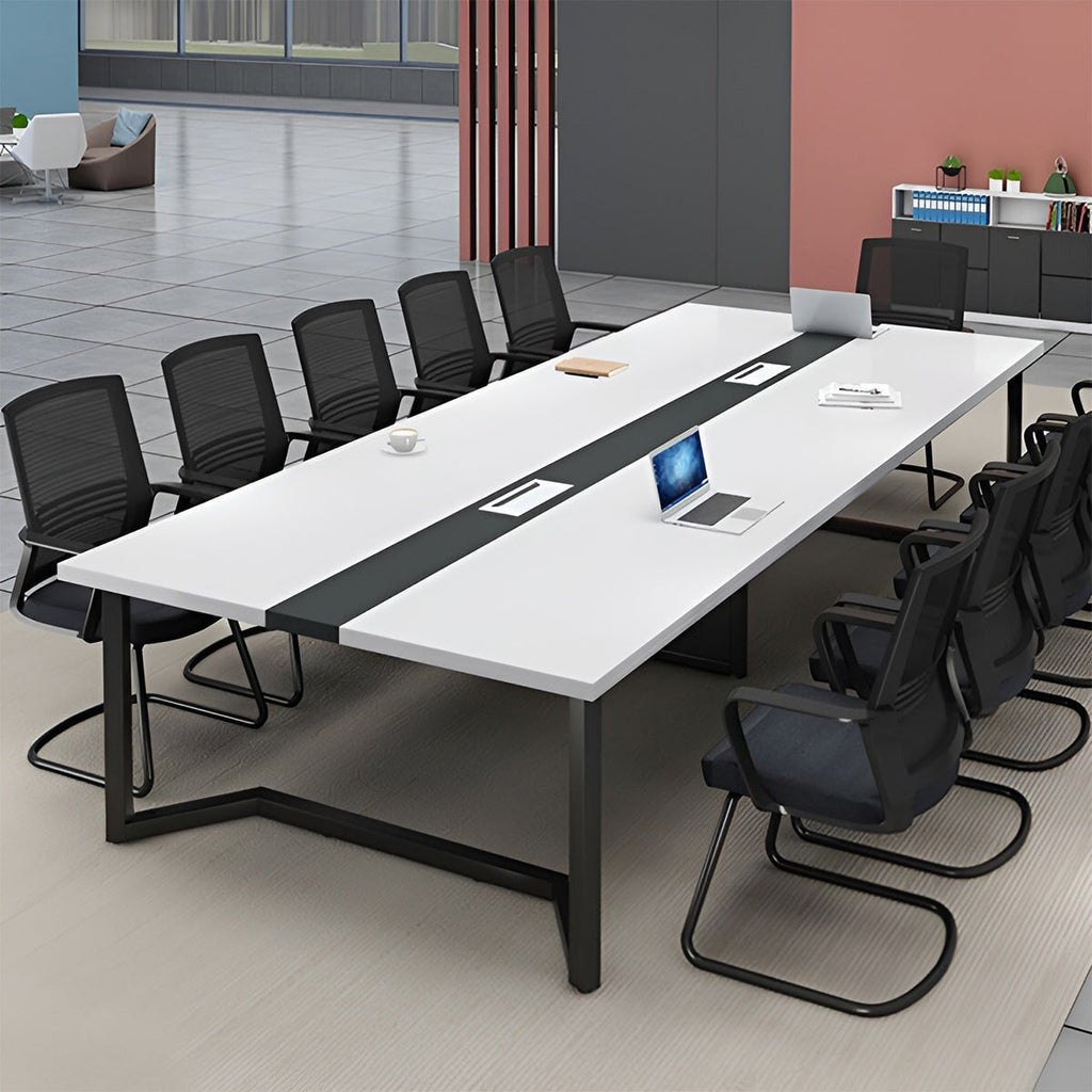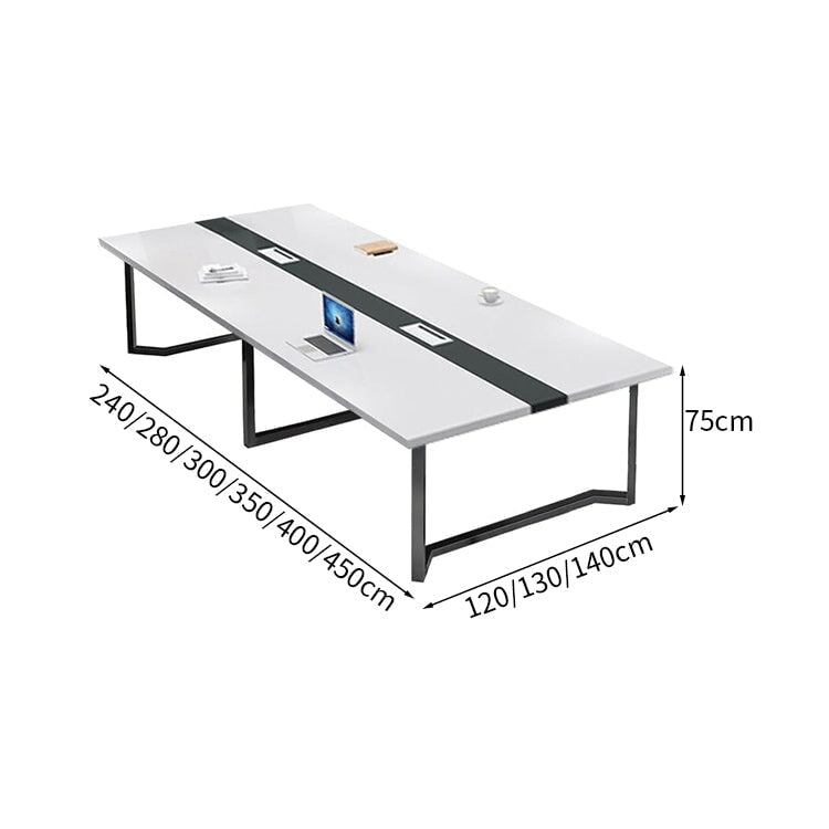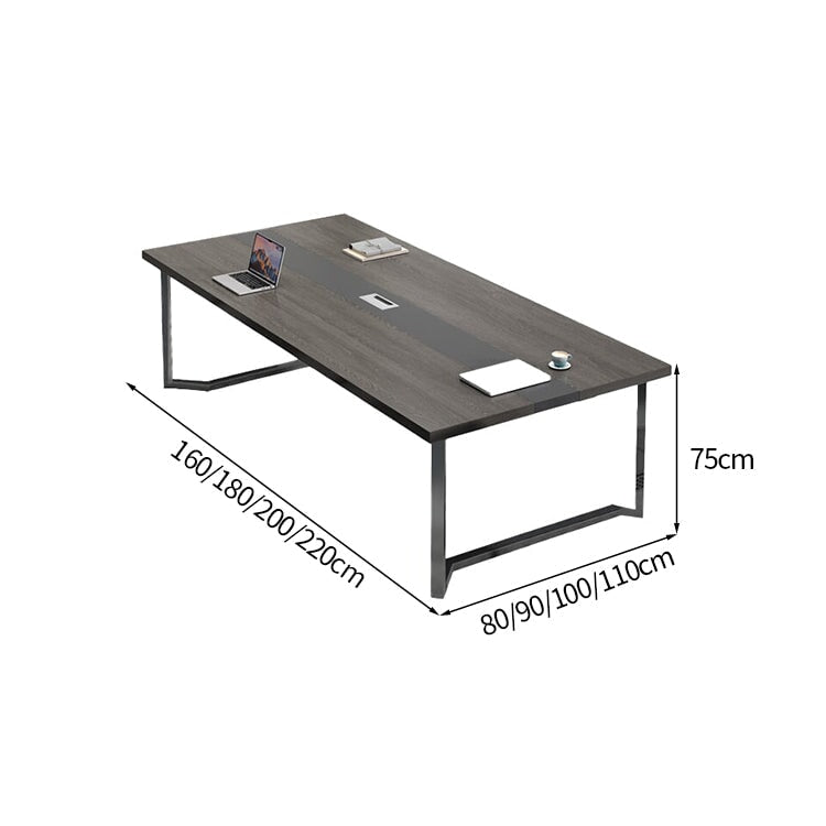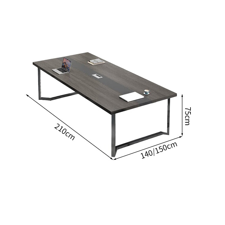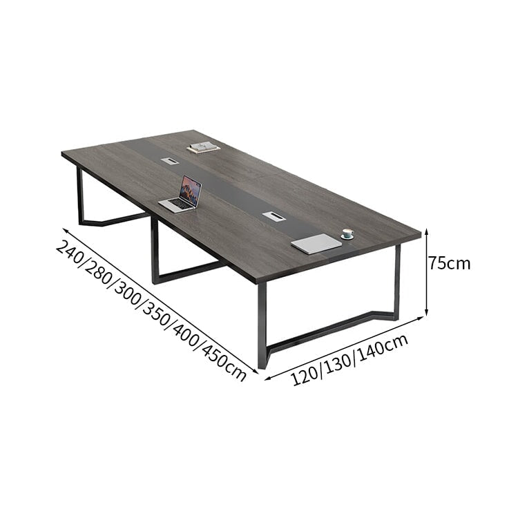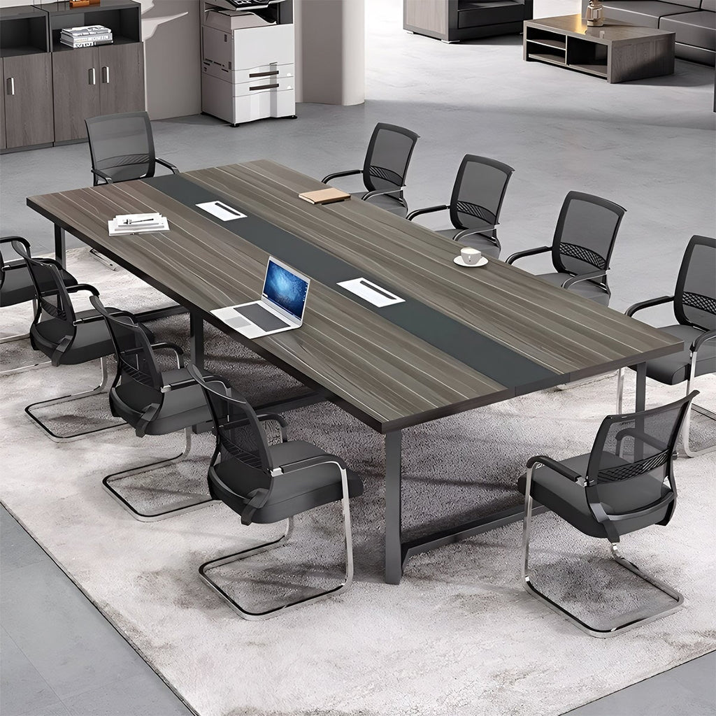 どっしり シンプル 木目調 配線ボックス 会議テーブル ミーティングテーブル メラミン化粧板 スチール オシャレ ホワイト ブラック グレー カスタマイズ可能 HYZ-K-036