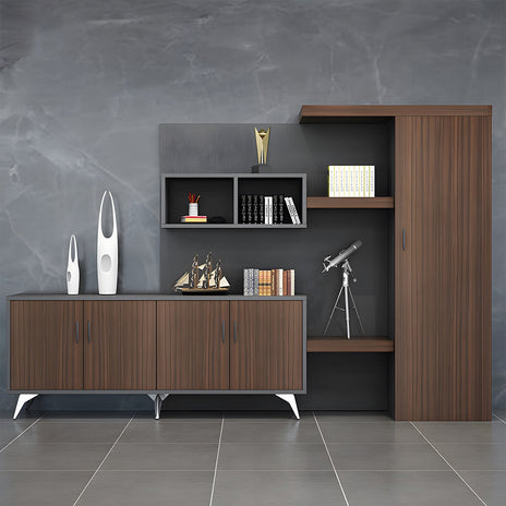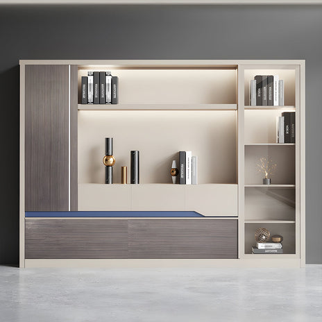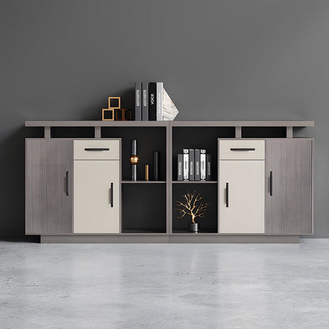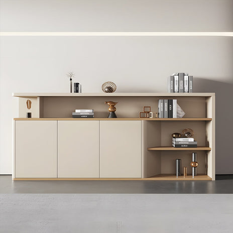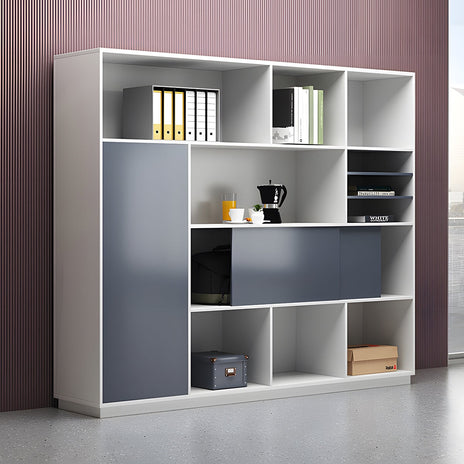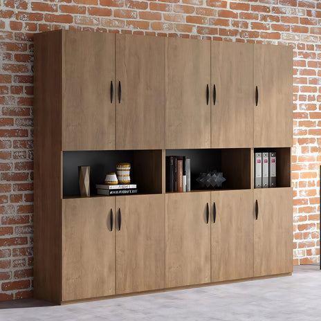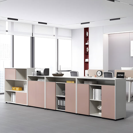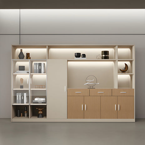 キャビネット ワードローブ付き オフィスキャビネット ファイリングキャビネット 木製書庫 書類整理棚 分類収納 メラミン化粧板 アジャスター ホワイト カスタマイズ可能 CWG-M027