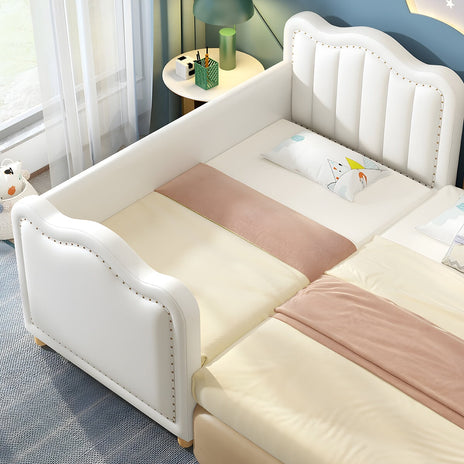 ベッド すのこベッド 子供ベッド ズレ防止ガード PUレザー お手入れ簡単 高密度ウレタン 天然木フレーム エコ素材 ホワイト カスタマイズ可能 CBC-M006