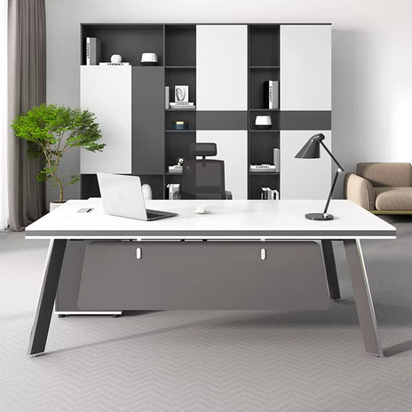 素材 エコ板材 カラー ホワイト、ナチュラルグレー 重量 110kg サイズ 140*70*75cm、160*80*75cm180*80*75cm、200*80*75cm220*80*75cm 組み立て 必要 カスタマイズ 可能 カスタマイズ項目 カラー、タイプ       商品説明   モダンシンプルな社長デスク アルミ合金製の脚はデスクをさらに丈夫にし、モダンな印象を与えます。耐久性が高く、軽量で、長時間の使用や移動にも安定性を保ちます。   黒白配色ファイルキャビネット 収納スペースが豊富で、複数の扉付き収納やオープン収納エリアがあります。文房具や書類、個人の物を便利に整理できます。   厚さ5cmのデスクトップ 5cmの厚い天板、頑丈で安定感があり長期間の使用でも変形しません。   アルミ合金製脚 アルミ合金製の脚は頑丈で安定感があり、モダンなデザインが特徴で、長時間の使用にも耐えます。   多機能サイドキャビネット 多機能サイドキャビネットで大量の収納スペースを提供し、オフィス用品を整頓できます。   広々としたデスクトップ...