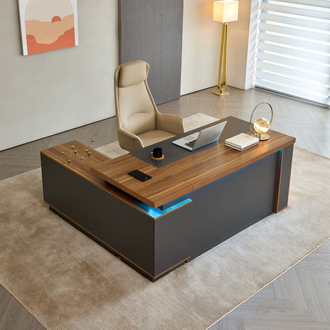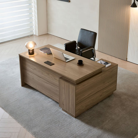 素材 メラミン化粧板 カラー ウォルナット 重量 80~160kg サイズ 140*160*75cm、160*160*75cm、180*160*75cm、200*160*75cm、240*180*75cm、280*180*75cm 組み立て 必要 カスタマイズ 不可 カスタマイズ項目 無       商品説明   エレガントなエグゼクティブデスク このエレガントなエグゼクティブデスクは、業務効率を高めつつオフィスの品格を格上げします。優雅さと機能性を兼ね備えたデザインで、洗練されたビジネス環境を演出します。   厚みのある天板 厚さ5.8センチの天板、耐荷重・耐久性ともに優れており割れ・ねじれが発生しにくく、安心して使えることができます。   厚手の脚 全体の安定性を確保し、地面へのしっかりとした接地が、変形や揺れが発生しにくく、安心して座ることができます。   エコ素材 厳選されたメラミン化粧板は安全で無臭な使用感を提供し、そのねじれにくい強固さはデスクの耐久性を向上させ、長らくご愛用いただけます。   ワークスペース 広々としたデザインで、書類やパソコン、事務用品をゆったりと配 置できるため、作業効率が向上し、快適な作業環境を実現します。   配線ボックス...