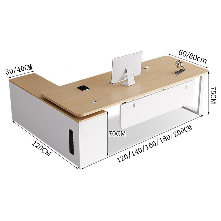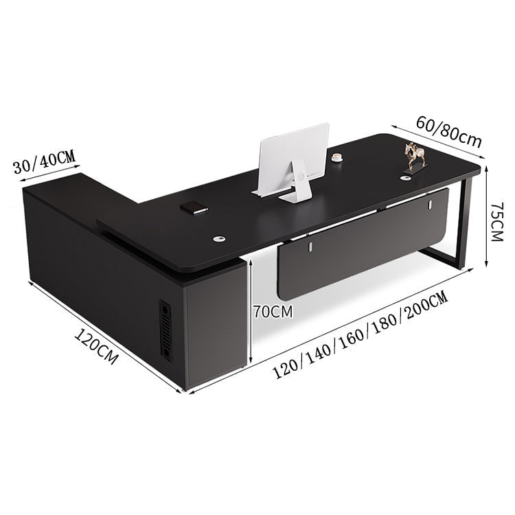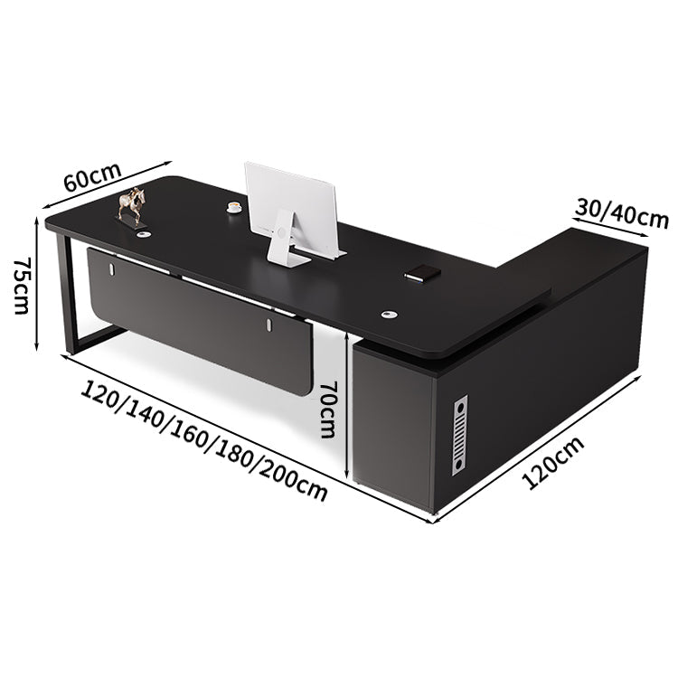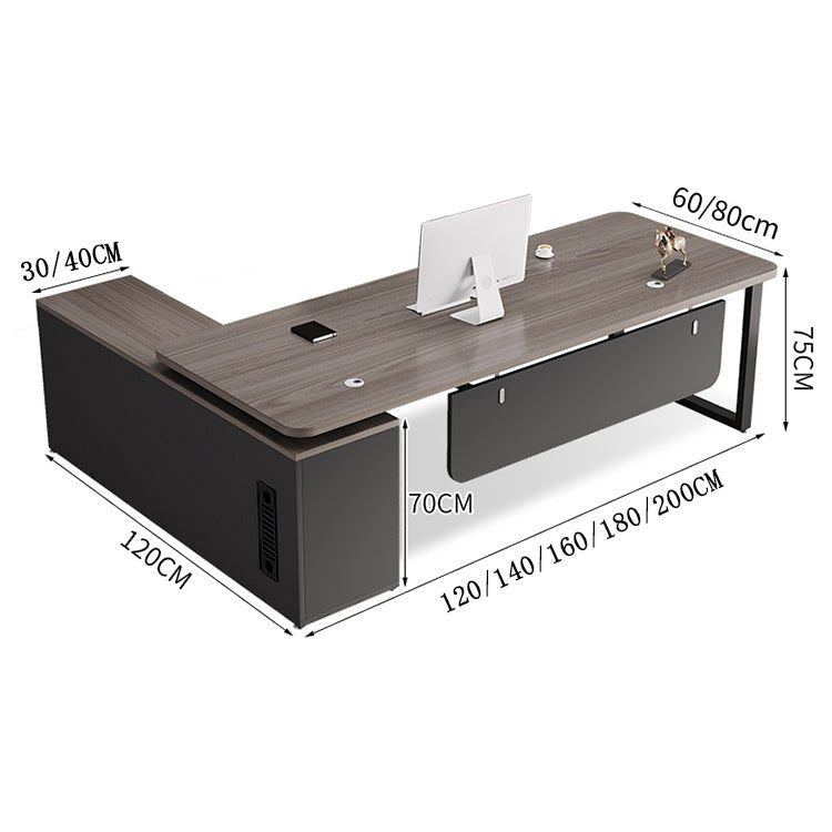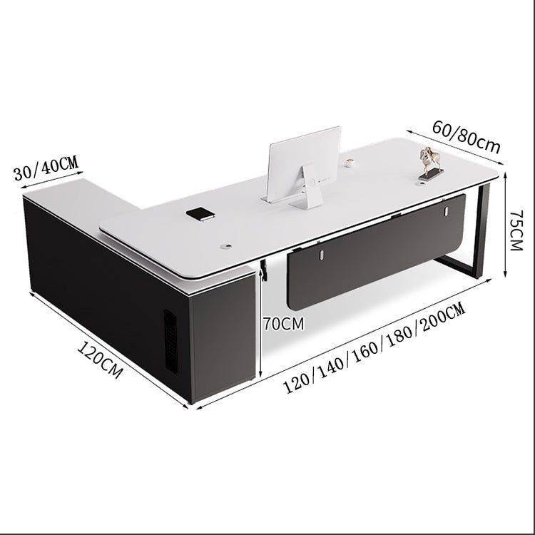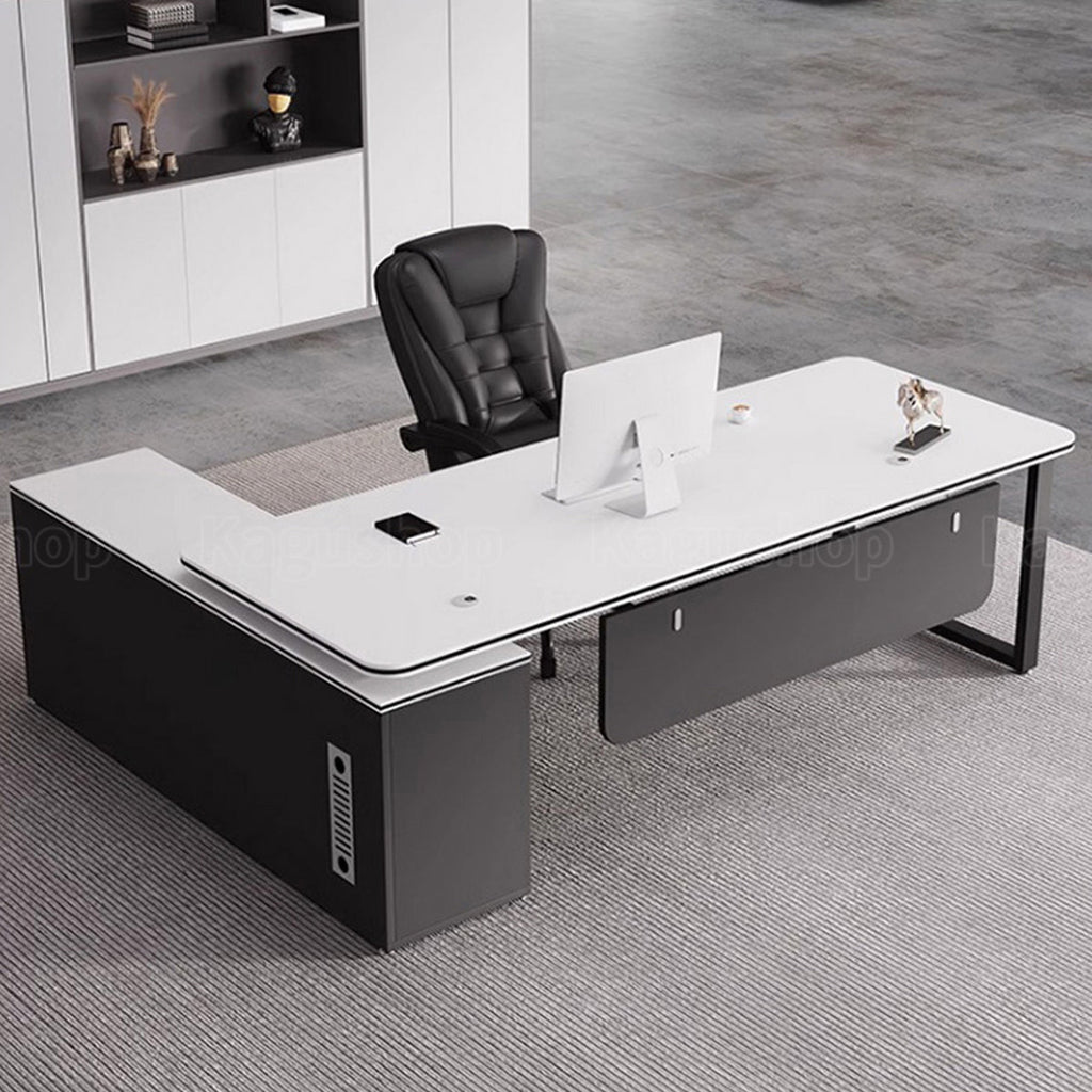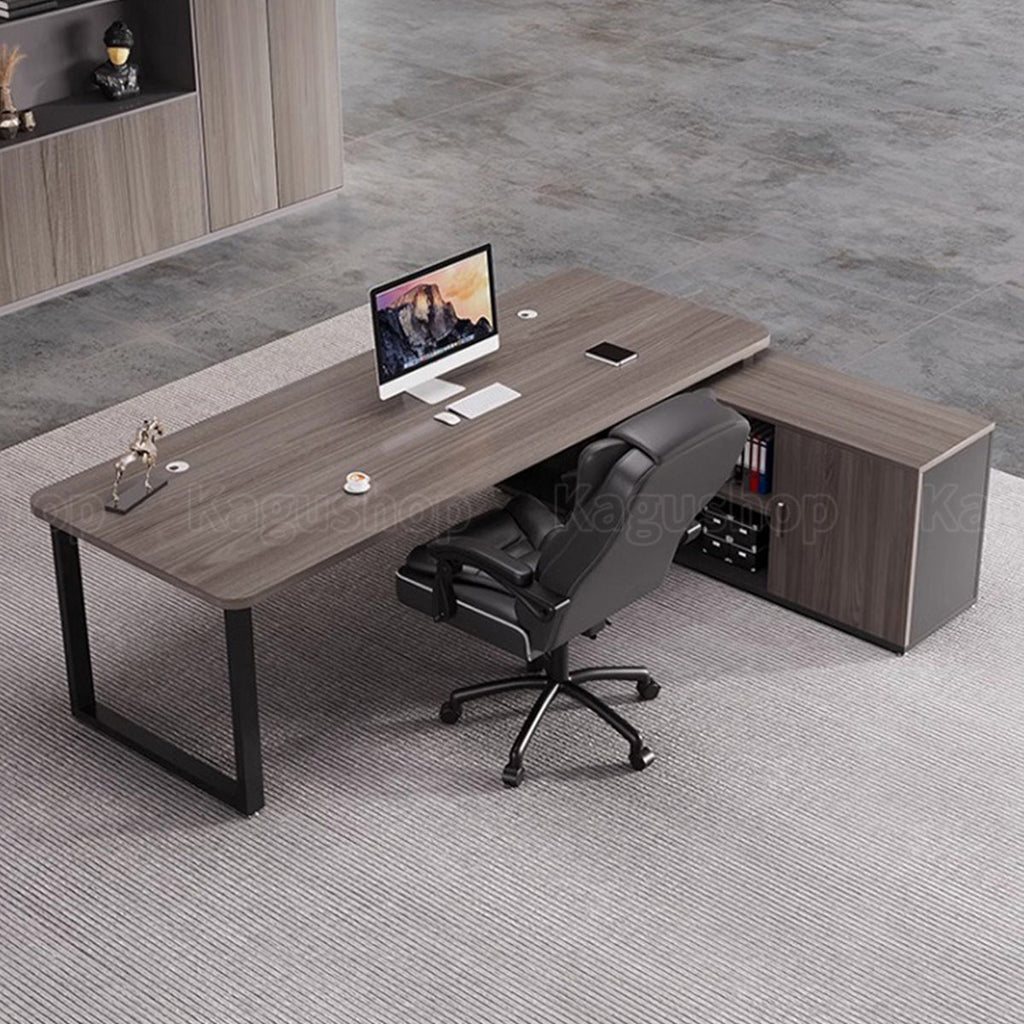 社長デスク エグゼクティブデスク オフィスデスク エコ素材 R加工 配線孔付き 幕板付き 通気孔付き サイドキャビネット オープン収納 LBZ-S012