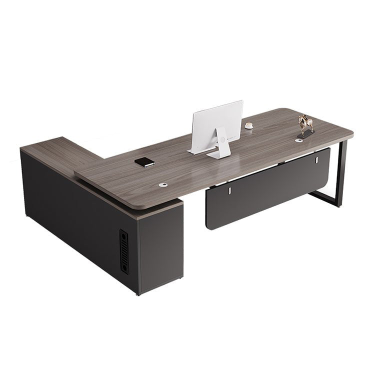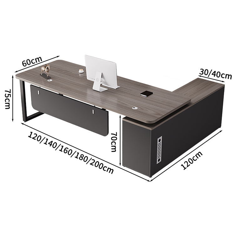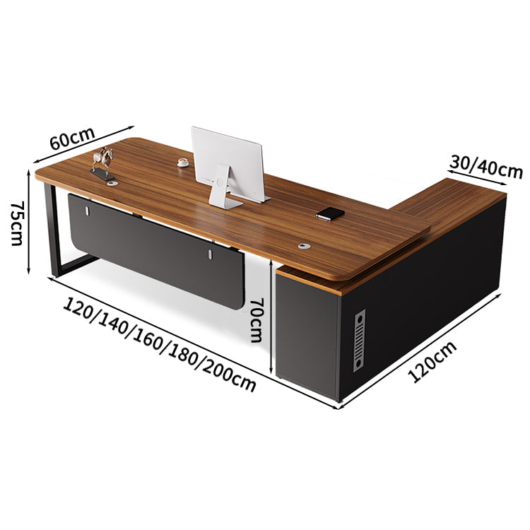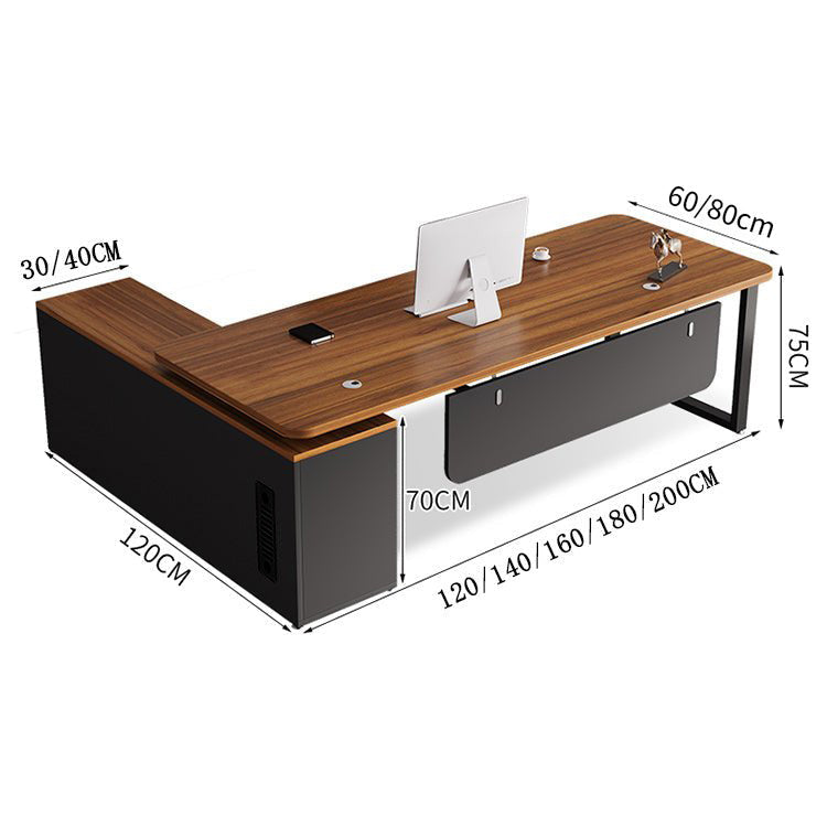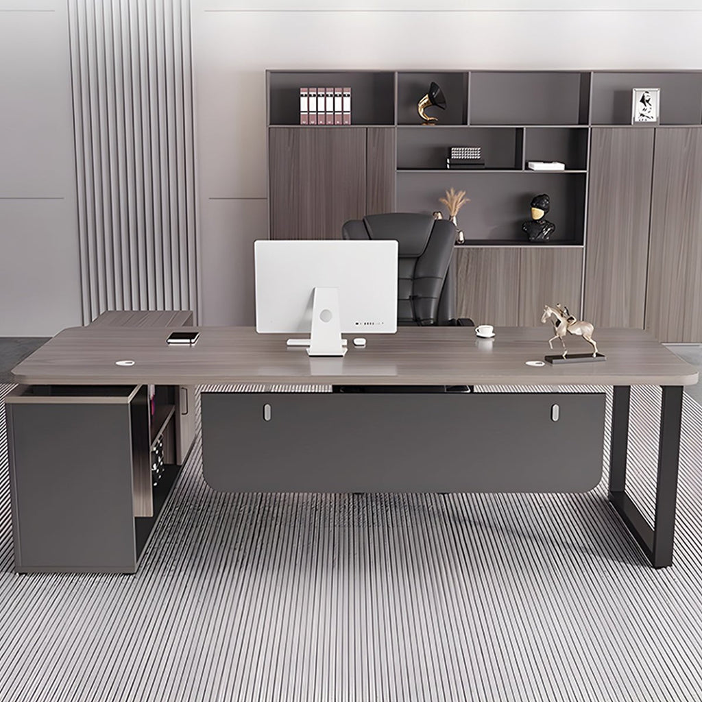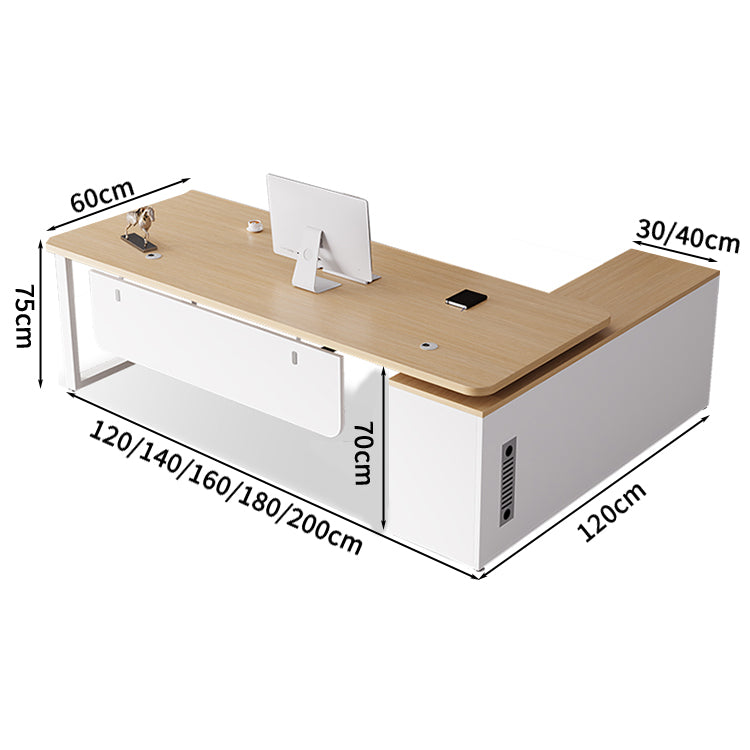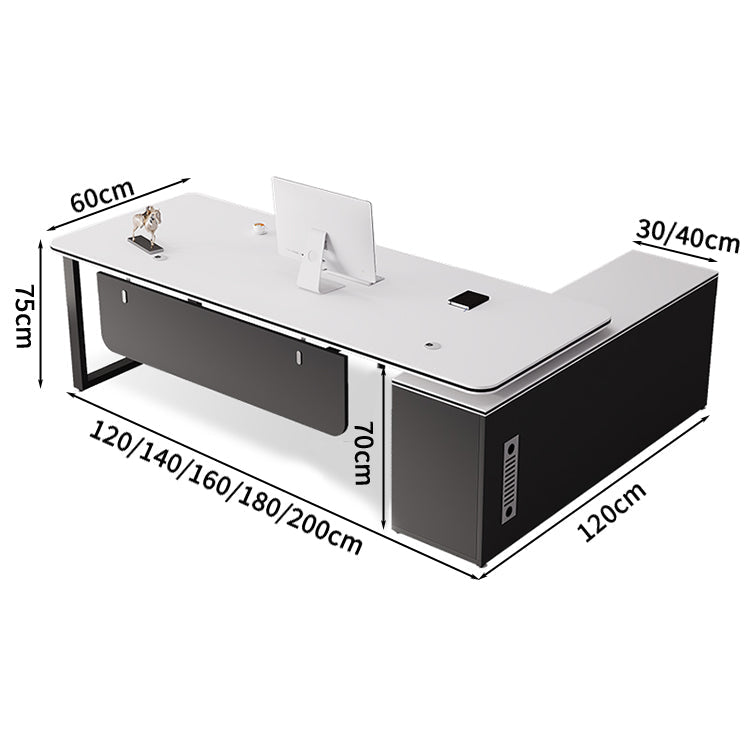 社長デスク エグゼクティブデスク オフィスデスク エコ素材 R加工 配線孔付き 幕板付き 通気孔付き サイドキャビネット オープン収納 LBZ-S012