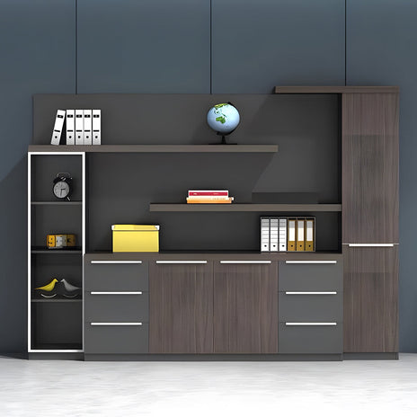 収納キャビネット 落ち着き オフィスキャビネット オフィス整理棚 分類収納 扉付き収納 オープン収納 エコ素材 おしゃれ ブラック グレー CWG-M-098