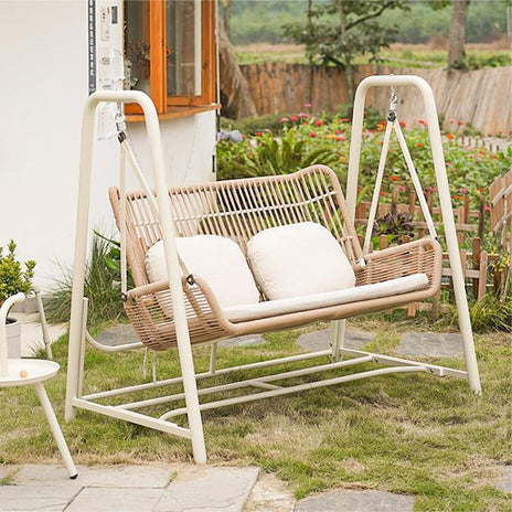 ガーデンファニチャー ガーデン家具 ハンギングチェア 籐編み 人工籐 シリコンフィル アルミ合金フレーム ナチュラルテイスト ホワイト カスタマイズ可能 HWYZ-M013