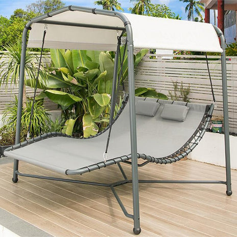 ハンモック ルーフ 屋根 シェード 日よけ サンシェード アウトドア ガーデン家具 ポリエステル生地 耐候性 焼付塗装 強化ナイロンバンド スチール グレー HWYZ-M009