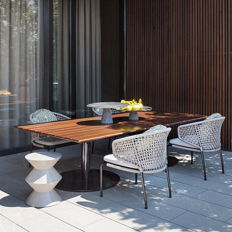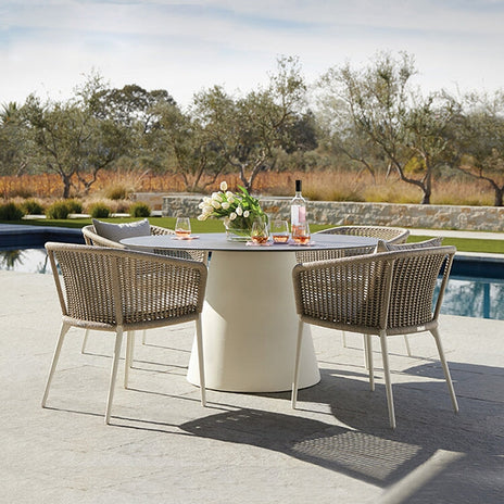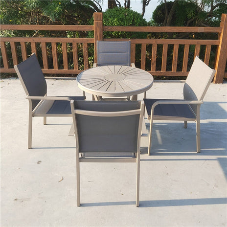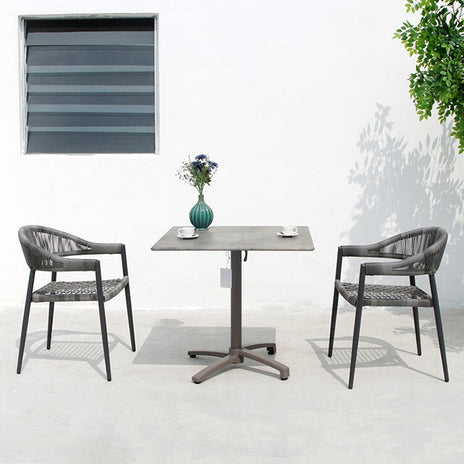 テーブル・チェアセット シック ガーデンテーブル ガーデンチェア ロープチェア ポリエチレンロープ 耐候性 アルミ合金フレーム カジュアル グレー カスタマイズ可能 HWZY-M006