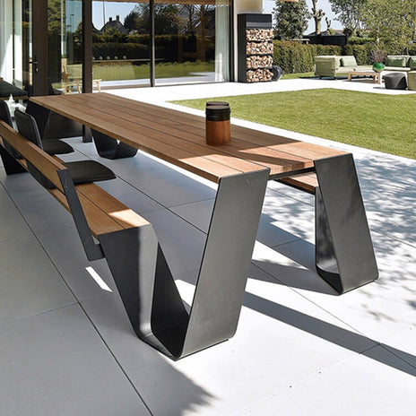 ガーデンテーブル・ベンチセット 屋外家具 ガーデン家具 焼付塗装 天然木使用 チーク材 アルミ合金フレーム ブラック カスタマイズ可能 HWZY-M012