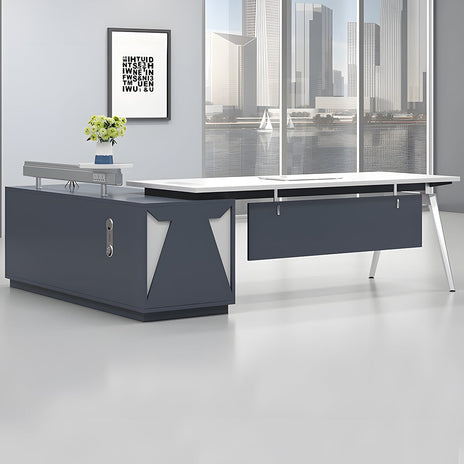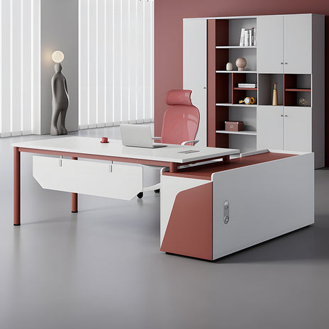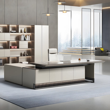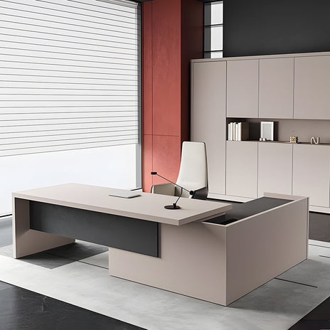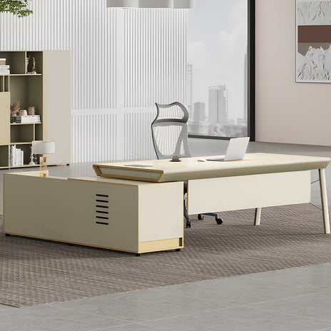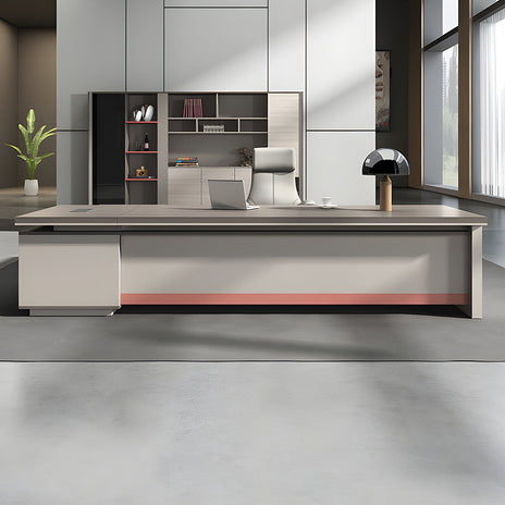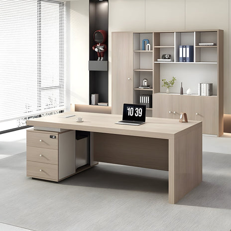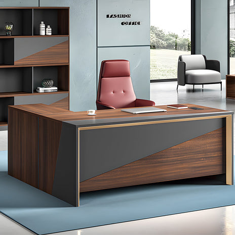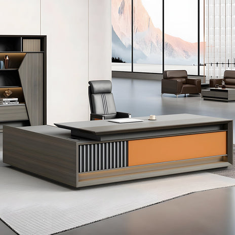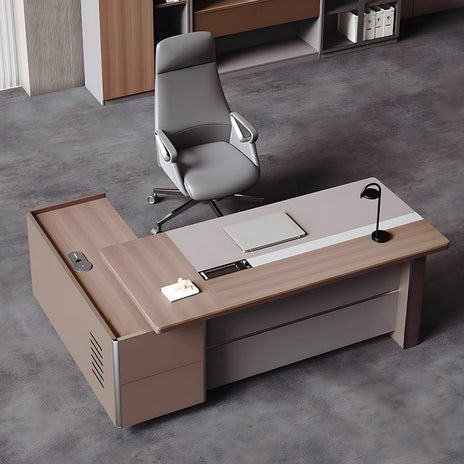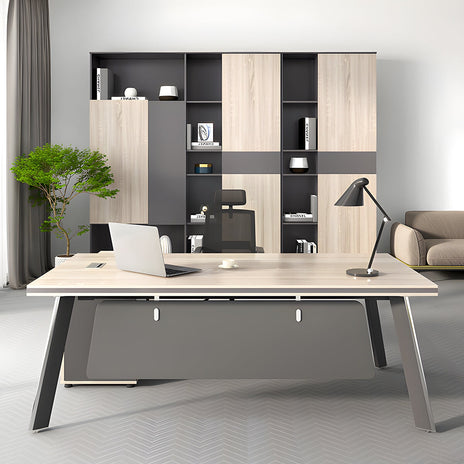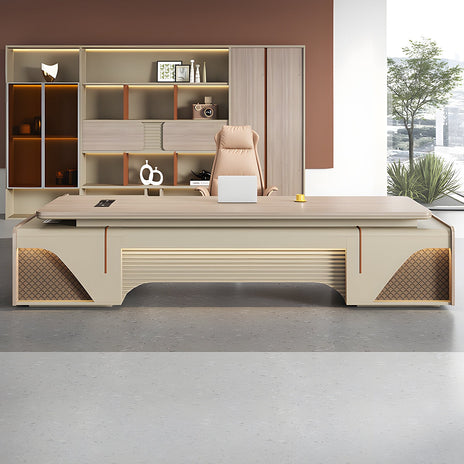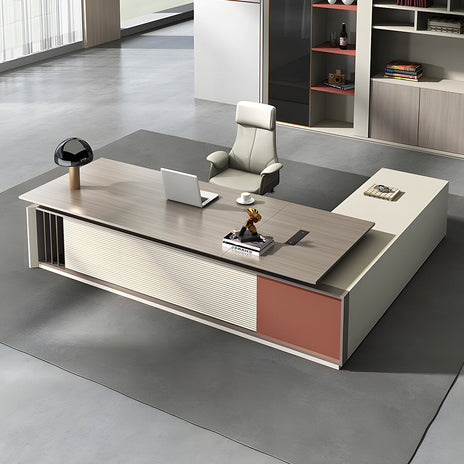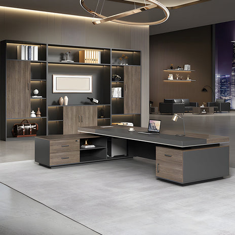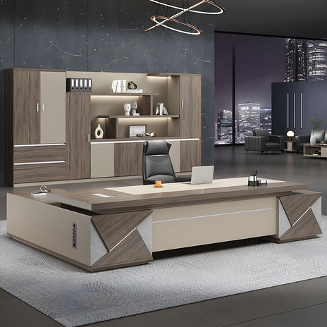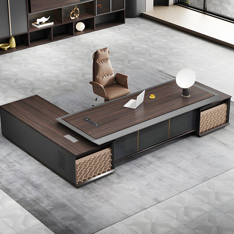 デスク 社長用 機能性 エグゼクティブデスク プレジデントデスク 爽やかな雰囲気 メラミン化粧板 サイドキャビネット 配線ボックス 卓上コンセント ブラウン カスタマイズ可能 LBZ-M029