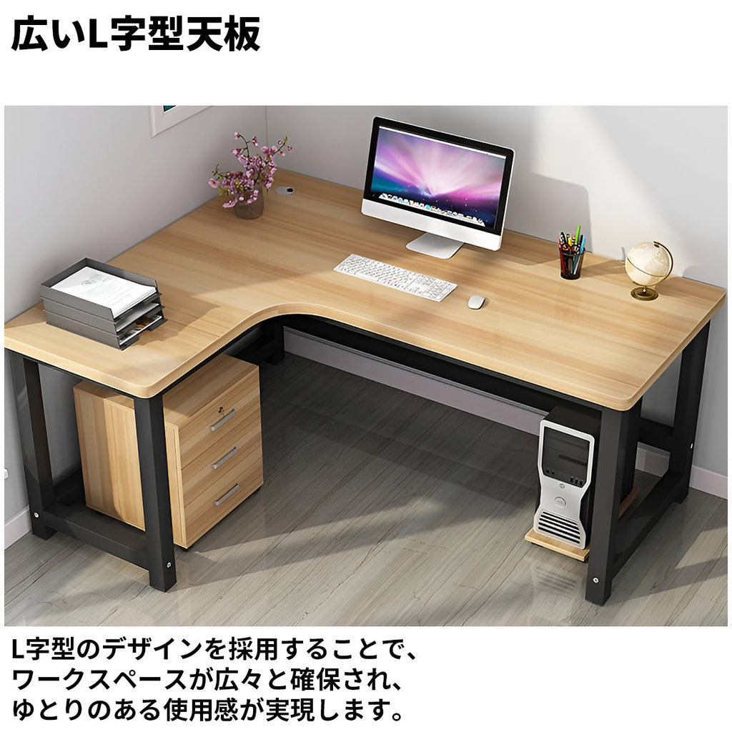 L字型天板 広め ゆとり 配線孔 スチールフレーム 安定性 メラミン化粧板 頑丈 R仕上げ デスク パソコンデスク 作業用 シンプル 実用 モダン ウォールナット ブラック BGZ-K-120