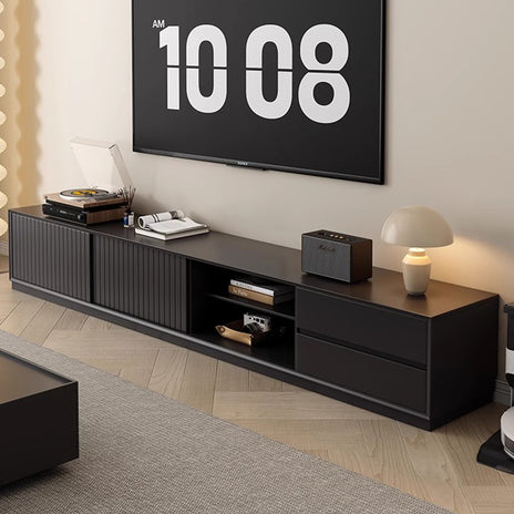 テレビボード TVボード リビングボード テレビ台 大容量収納 分類収納 シック 高級感 下開き扉 ストック ステー 緩衝蝶番 ブラック DSG-M017