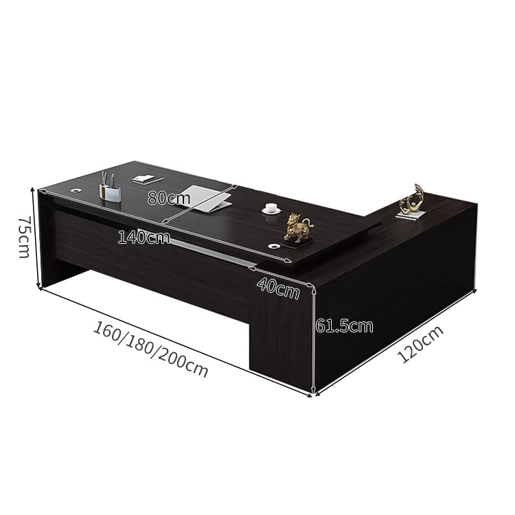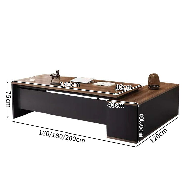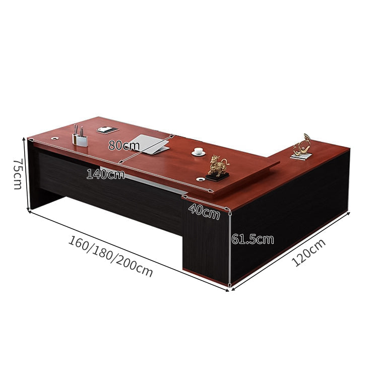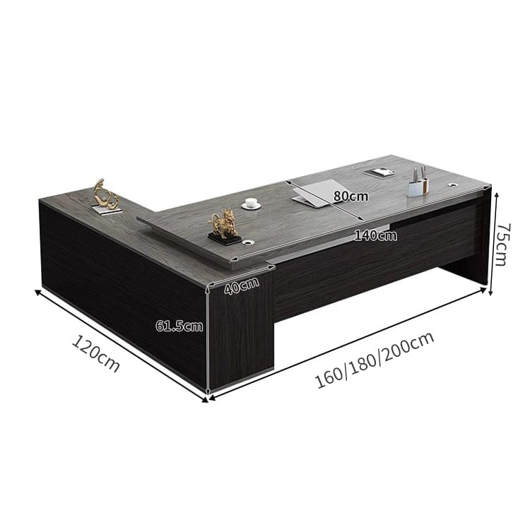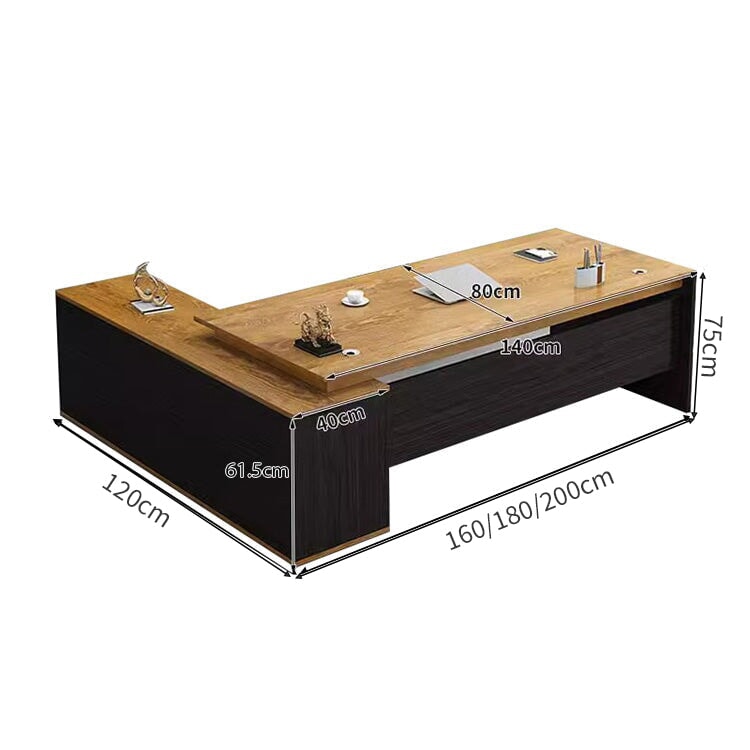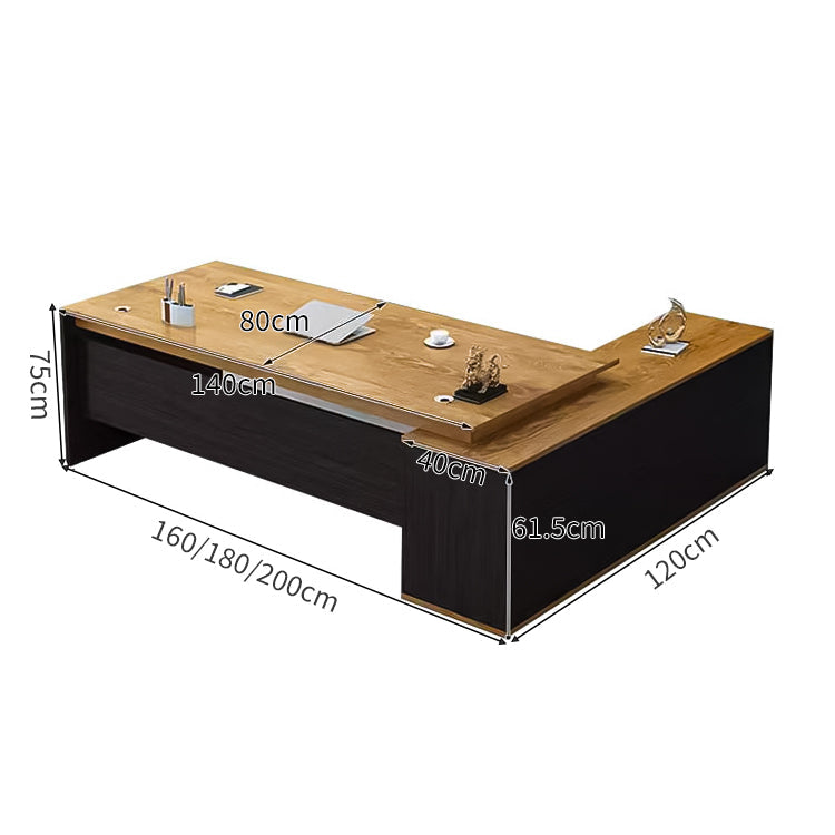役員室用 社長室用 配線穴付き Ⅼ字 サイドキャビネット付き 幕板付き プレジデントデスク パソコンデスク 事務机 エグゼクティブデスク おしゃれ 木目調 LBZ-C070