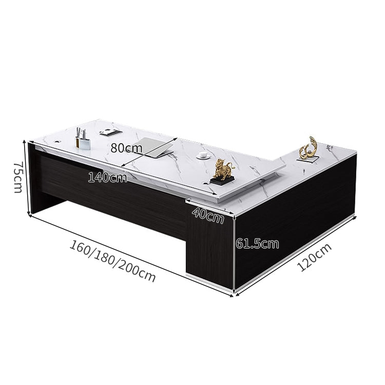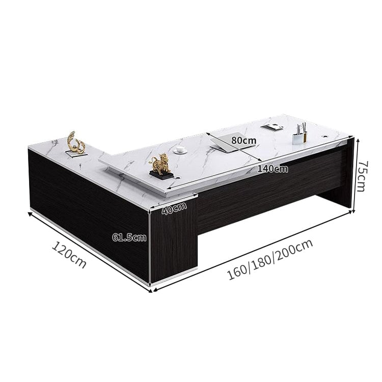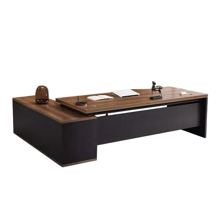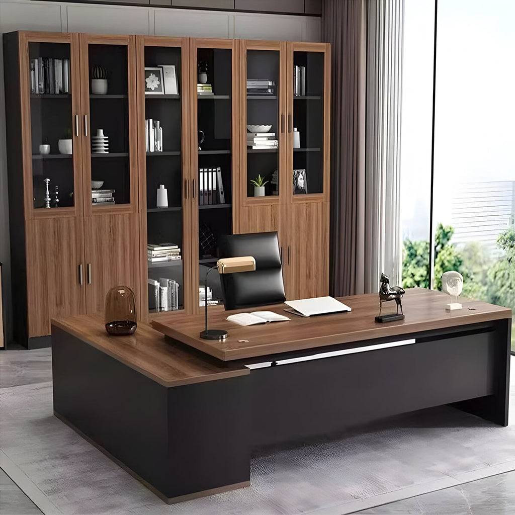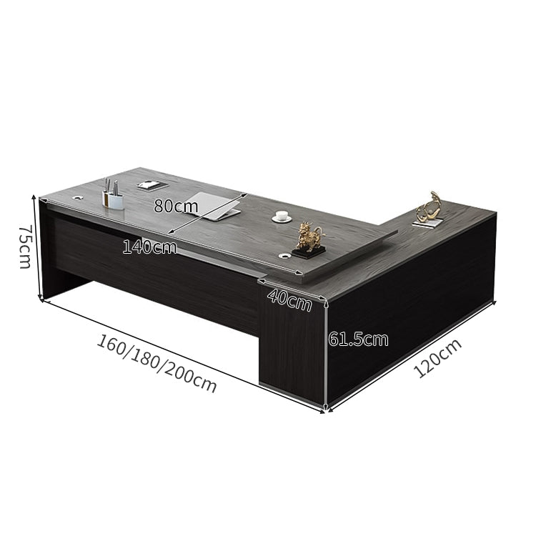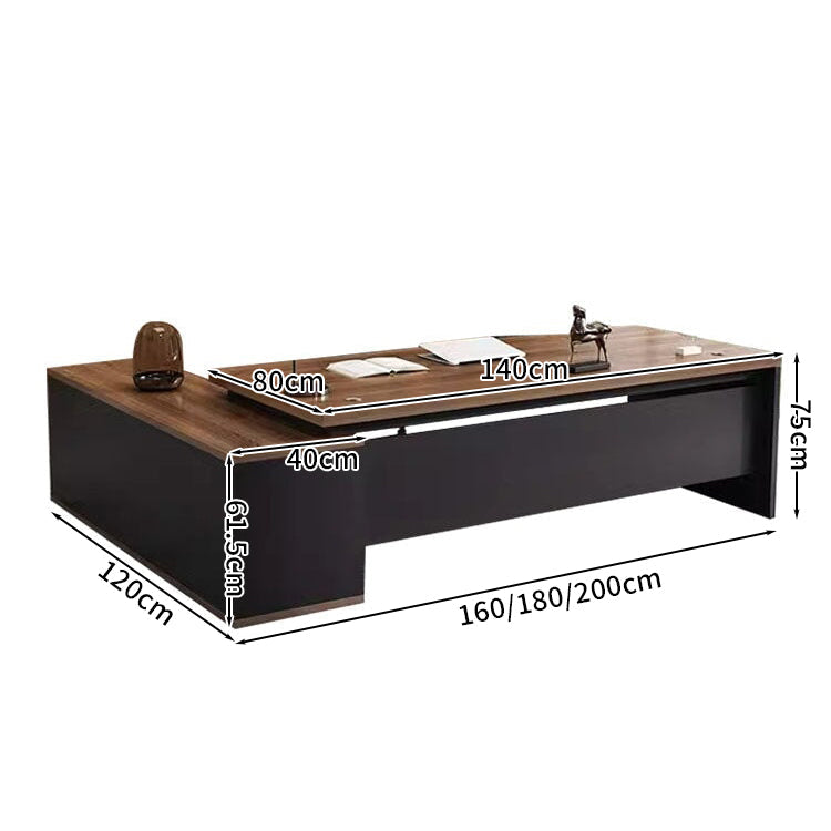 役員室用 社長室用 配線穴付き Ⅼ字 サイドキャビネット付き 幕板付き プレジデントデスク パソコンデスク 事務机 エグゼクティブデスク おしゃれ 木目調 LBZ-C070