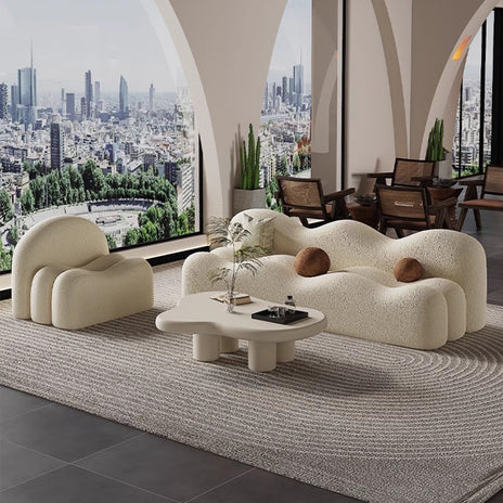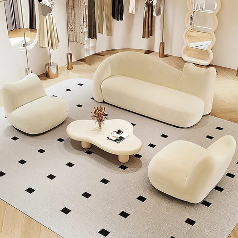 洋風インテリアソファー シープボア生地 高密度ウレタンフォーム 天然木フレーム オシャレ パイン材 優しい肌触り ホワイト カスタマイズ可能 BSF-M027