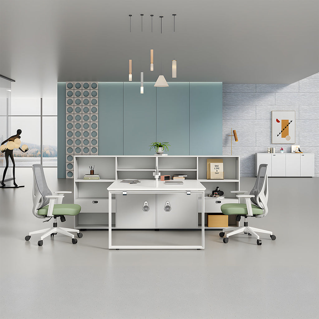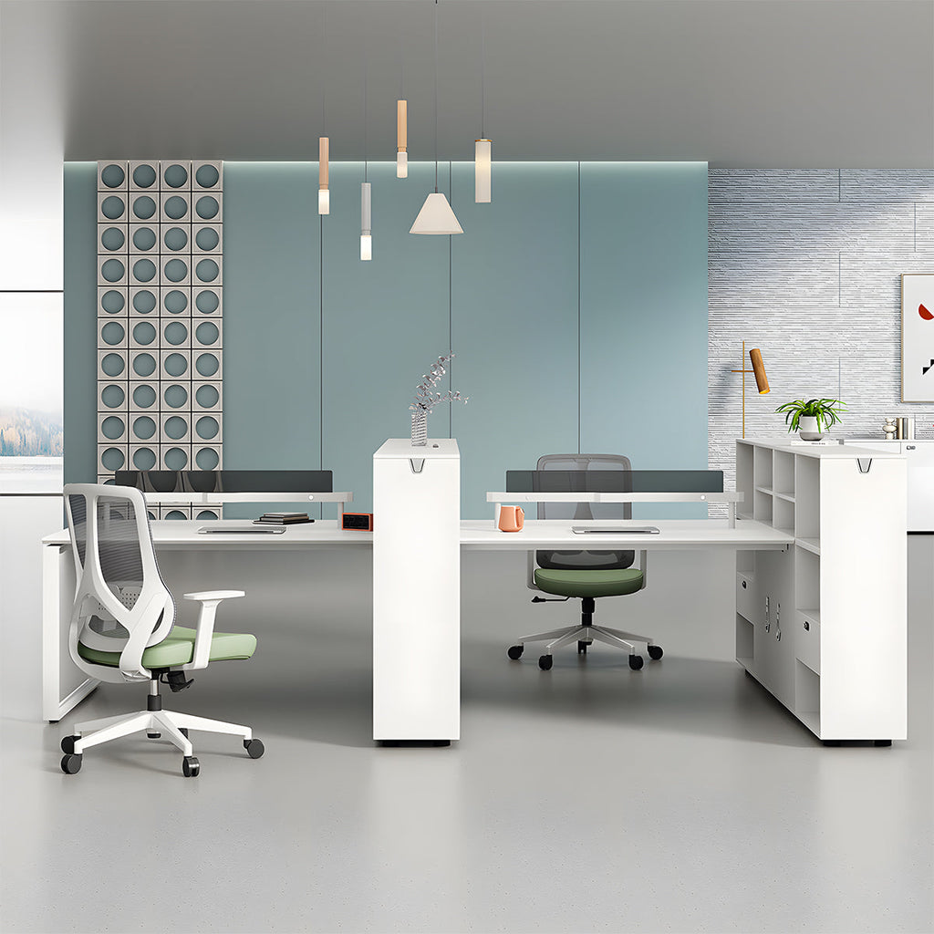 パソコンデスク 収納付きデスク 大容量の収納 パーティション付き 事務机 ワークデスク コンパクトデスク オフィスデスク PCの通気孔 高級感 ホワイト MG-BGZ-LLS15